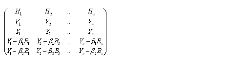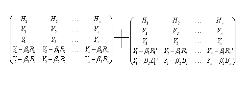 我們知道,傳統電視系統是由行向量H,幀向量V,亮度向量Y組成的三維線性空間的結構。用以下的矩陣來表示: