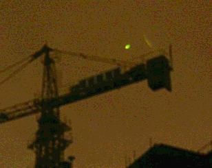 2013年6月6日凌晨,武漢市區電閃雷鳴?!段錆h晨報》攝影記者石一在機場高速公路與馬池路交會處附近的一個小區拍攝雷電時,無意中拍到幾個綠黃色神秘光團(圖2、3)。[2]