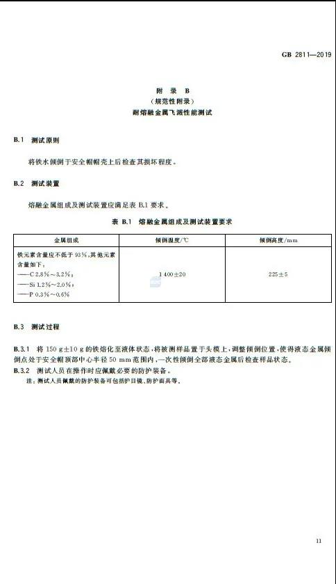 · 修改了標準適用范圍 · 修改了部分術語和定義的措辭,并刪除了部分術語 · 增加了安全帽的分類 · 修改了對于安全帽質量的要求 · 修改了對于佩戴高度的要求 · 修改了對于通氣孔的要求 · 修改了對于耐低溫性能的要求 · 增加了對于耐極高溫性能的要求 · 修改了對于電絕緣性能的要求 · 修改了對于防靜電性能的要求 · 增加了對于耐熔融金屬飛濺性能的要求 · 修改了對于安全帽永久標識的要求 新版的GB2811-2019規定,在安全帽內側,全生命周期內必須清晰保持以下6項標識: a)本標準編號; b)制造廠名; c)生產日期(年、月); d)產品名稱(由生產廠命名); e)產品的分類標記; f)產品的強制報廢期限。 原文如下: