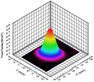 2013年10月,電子所實現了國內首次DPAL銫激光輸出,激光輸出功率394mW,光光效率7.4%,實驗光路如圖2-9所示。對各項參數進一步優化后,所得輸出激光具有極好的光束質量,光束功率密度分布如圖2-10所示。激光器光束質量M2因子接近1。實驗證明了DPAL在光束質量方面的潛力是極大的。