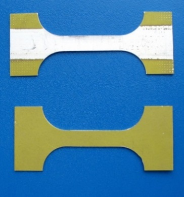 (3)安全性測試:將如圖3-4所示的經過激光除漆和未除漆的兩組樣品分別編號,采用美國MTS公司810型材料試驗系統對兩組樣品首先進行材料拉伸試驗。在最能反映材料強度的抗拉強度一項,除漆組樣品的平均值為399.6 Mpa,未除漆組的平均值為399.3 Mpa,兩組幾乎沒有差別。