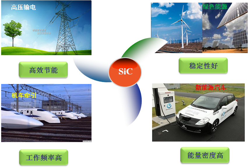 圖1 碳化硅功率器件的應用及其優異性能